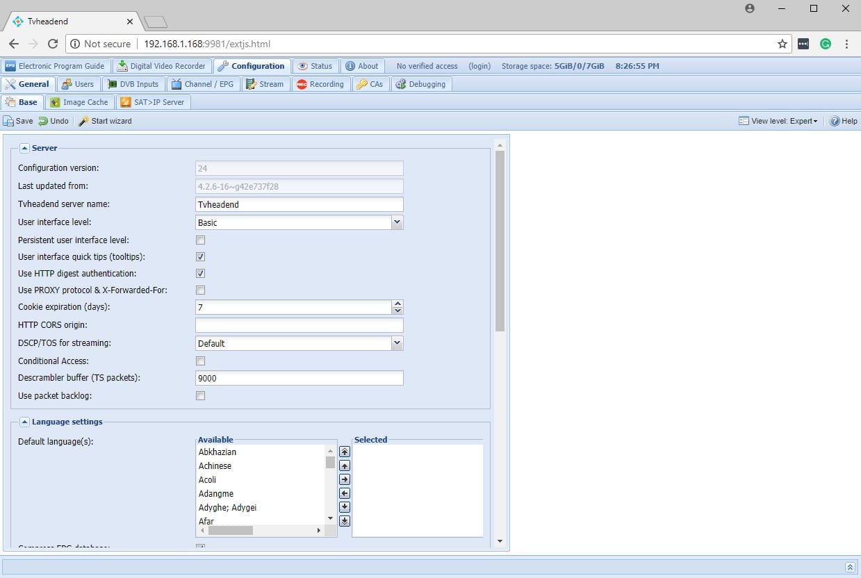 The configuration for TVheadend settings is coming soon. Thanks for your patience…