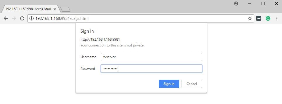 Step 3: Log into TVheadend